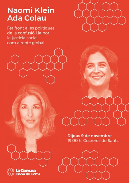 This Thursday the 9th of November at 7pm the Barcelona Mayor Ada Colau and progressive international author/journalist Naomi Klein will be speaking together.In a very timely moment for this part of the world in particular, the organisers say that "the starting point of this debate will be the imposition by antidemocratic powers of global policies that challenge our lives, our security and survival..."