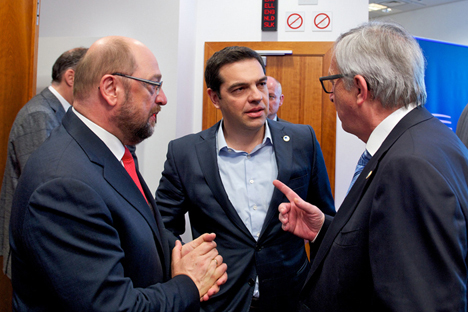 [Special meeting of the European Council on 23 April 2015. From left to right: Martin Schulz, President of the European Parliament; Alexis Tsipras, Prime Minister of Greece; Jean-Claude Juncker, President of the European Commission. Photo: European Council. Source: Flickr]"As the Greek crisis continues, Steffen Vogel reportsthat a majority of German business leaders look upon a Grexit as a favourable option, according to a survey published last month in the German business daily Handelsblatt.