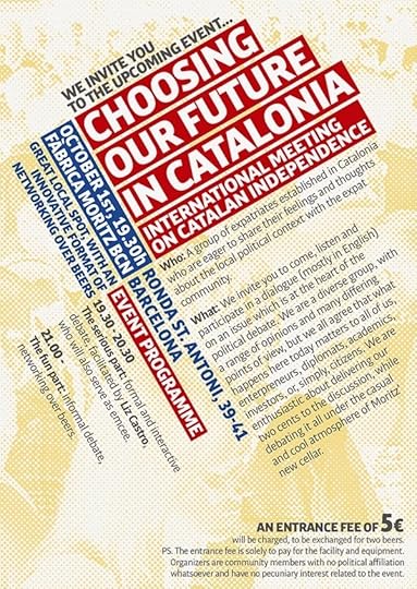 "An event is to be held on October 1 at 7:30pm at the Fabrica Moritz in Barcelona: a discussion among the expat community about the independence of Catalonia and how it affects [expats] in particular, followed by a networking session to relax and chat more informally.