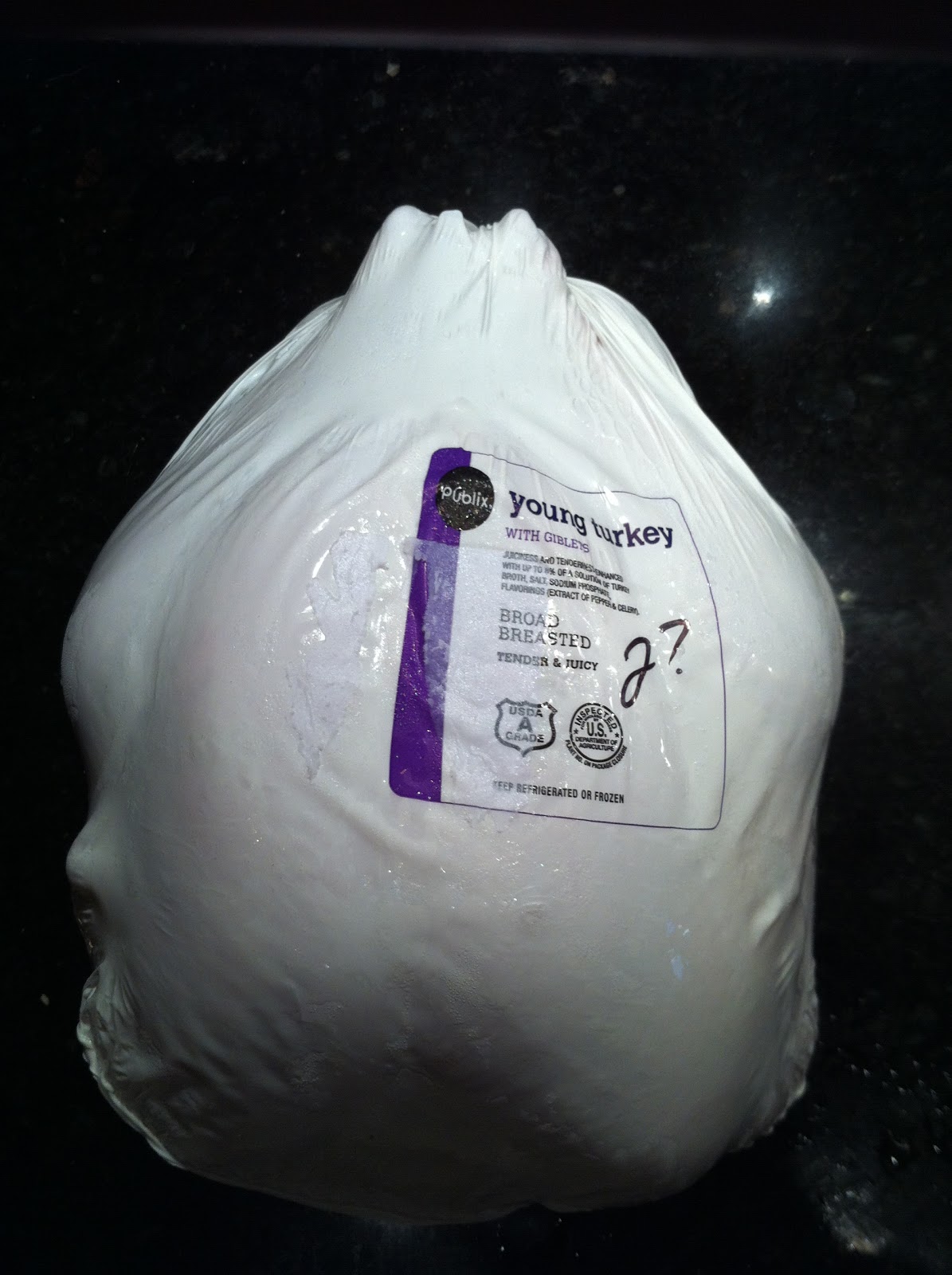 I was in our local grocery store picking out the perfect turkey. In front of me were layers of turkeys that were shrink-wrapped, netted, weighed and priced. As I sifted through them, there was a couple to my left also looking for the perfect bird. They spoke a language I didn't understand. The man stopped, faced me, looked at the shrink-wrapped and netted bird he was holding and asked in slightly broken English...