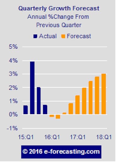 But there’s good news: Q1 2016 GDP is projected to be in the 2% range, unlike the two previous first quarters in 2014 and 2015, which were both negative. It’s asking a lot of the other three quarters to put together a good year when you start out in the hole.