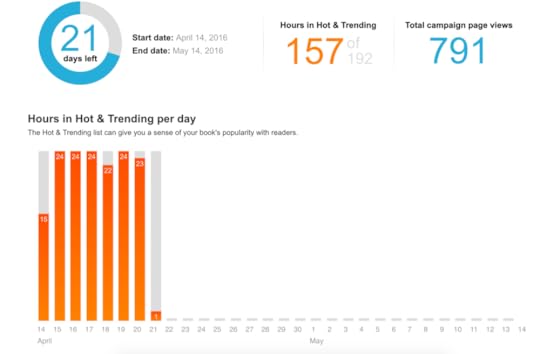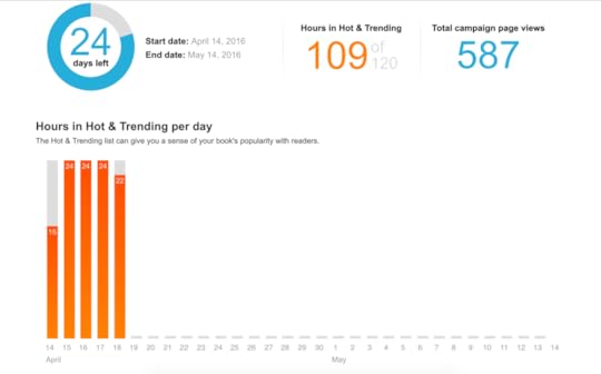 Anyway, here are the ongoing stats for the campaign up through today. It runs until May 14th and then I'll be in the waiting period until I hear back from the Kindle Scout team about their decision.