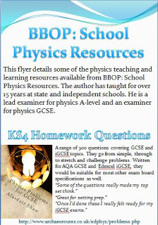 I've just put together a flyer for my KS4 physics resources. They cover a variety of courses, including AQA GCSE Core Science, AQA GCSE Additional Science, and Edexcel iGCSE Physics.