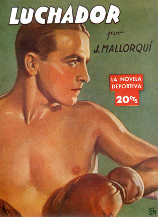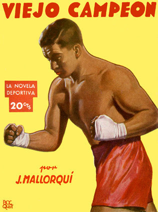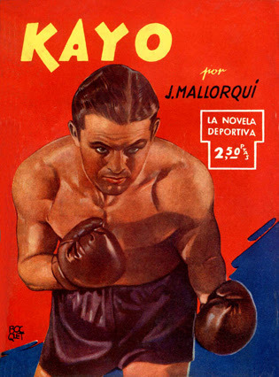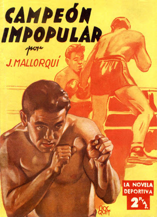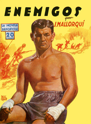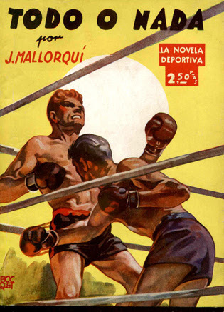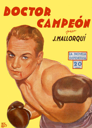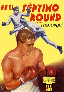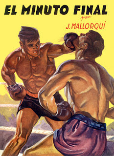 Fight Fictioner and Fight Card fan Gonzalo Baeza forwarded me some great covers of Spanish fight pulps from the late '30s and early '40s, part of the First Novel Series Sports originally published in Argentina. There were 44 different titles, 16 published in Spain, featuring all different sports, including boxing. The tales are written by Joseph Mallorquí Figuerola, better known for his Zorro-like westerns featuring The Coyote.