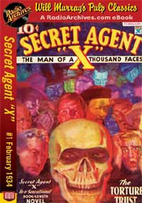 Men with skulls for faces — these were the victims of that terrible trio who met in a hidden room. And Secret Agent "X" went against them, daring the bottled torment of their deaf-mute slaves, in a desperate battle of wits at the gateway of destruction! From 1934 to 1939 America thrilled to the adventures of Secret Agent "X" — the "man of a thousand faces" — as he battled futuristic weapons and mad scientists. The true identity of Secret Agent "X" was never revealed. He used his mastery of disguise to work undercover for the U.S. government. With his aide, newspaper reporter Betty Dale, and his secretive government handler K-9, he battled weird and fantastical threats to America for forty-one amazing issues.