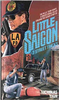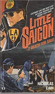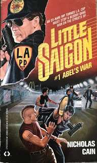 Futher checking quickly revealed Jonathan Cain as a pseudonym for Nicholas Cain—whose most likely connection to Journey was being barraged by their music on his car radio. The ever more valuable Paperback Warriorwebsite gave a lukewarm review of Cain’s initial Little Saigon series entry, Abel’s War (a guy named Cain writing about a character named Able—let’s not go there), but does give a nod of acknowledgement to Cain stating: His volunteer service time in Vietnam (despite a high draft number) and as a Colorado state trooper is commendable... CLICK HERE