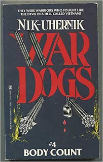 In a recent used bookstore foray, I picked up a copy of War Dogs #4 Body Count, an entry in a 1984 men’s adventure paperback original series set during the Vietnam war. Having been a collector of men’s adventure genre novels since my late teens, I was surprised to find myself unfamiliar with both the series and the author Nik Uhernik.