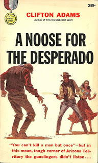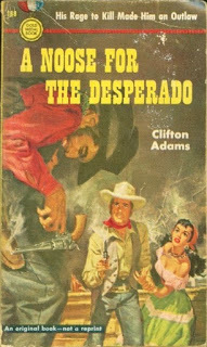 November is Western Month over Stark House Press. Last year, Stark House offered a trio of tales in a collection of Harry Whittington’s distinctive shoot-‘em-ups. This year, it’s a duo of connected Western noirs from Clifton Adams—The Desperado and A Noose for the Desperado. These were the first two novels to be published by Adams, who would go on to write some chilling hardboiled novels published as Clifton Adams and using the pseudonym, Jonathan Gant—plus one oddball crime novel as Nick Hudson. Adams also wrote a many more Westerns, bylined by his own name, as well as the pseudonyms Clay Randall and Matt Kinkaid.
