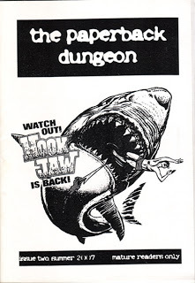 The first book I remember being passed around at school, like dog-eared contraband in a prison camp handed over with a conspiratorial nod and a wink, was Chopper, another New English Library book. This outlaw-biker classic was first published in 1971, but I’m talking about 1979 when I was ten, so it’s little wonder it was held together by Sellotape and spit after so many years in circulation. A biker version of Macbeth, replete with explicit sex and violence, it was entirely inappropriate for a ten-year old, which is exactly why it was so wonderful. Decades later, I discovered the author of Chopper had lived around the corner from me for many years.   A similar youth-cult book was Skinhead, which on top of the sex and violence was deeply racist. When my parents found it and flicked through it, they disapproved and made me donate it to a yard-sale. My parents were very liberal, allowing me to watch Hammer horror films and turning a blind eye to my girlie magazine collection (a few years later), so I knew the book must have been bad for them to confiscate it. I wonder if my whole path of a life in pursuit of rare and unusual paperbacks was mapped out at this point.  I bought Skinhead at Read ‘n Return, a used book store which made its money from the huge selection of skin-mags displayed at the back of the shop—off-limits to the likes of me. It was guarded by a grizzled Alsatian dog the size of a bear. Although the owner was cool, I later heard he sold all sorts of highly dubious material under-the-counter. He also stocked comics, which is why I had started to frequent the place. He would give you half back on your purchase price if you returned the comics for re-sale. The boxes of older returned comics were an absolute treasure-trove to any teenager on a budget.  I purchased my first book outside of my parent’s supervision there—Reign of Hell by Sven Hassel. I have no idea how I knew about this book, but it was part of a fifteen-odd book series purportedly based on true events surrounding a German penal regiment. With a colourful gallery of rogues, a strange mish-mash of extreme gore and anti-war preaching, this was the book I fervently pushed into other kid’s hands. It spawned a whole genre in the UK, with any number of English authors adopting Germanic pseudonyms to tell their own gritty stories of German Stormtroopers, with Leo Kessler being the most successful example. The first brand-new, full price book I can recollect buying was Killer Crabs by Guy Smith, whose pulp horror novels are something of a cult to this day. It’s became popular to knock Smith, but his books were very commercially successful and exactly what any morbid and horny teenager was looking for as a slim but outrageous read. I bought it from Woolworths whilst on a family caravanning holiday along the South coast of England. After a day on the beach, I would read it before bed, and can still remember the feel of the sleeping-bag against my sun-burned arms. Strange what memories and associations we carry with us. Throughout this time, I never kept the books I read. I saw them as disposable, taking them back to the Read n Return or to swap with friends. It’s only been in the last 15 years I’ve proactively begun to collect and accumulate paperbacks. However, I may keep the books (I own in excess of 15,000 paperbacks), but I take little care of them. People expect me to have them stored in Mylar bags and filed away in alphabetical order, but the reality is they are randomly piled up in my garage, which always causes me a giant headache whenever I try to locate a particular title amongst the chaos. I will often read a book in the bath, which will typically end up dog-eared and/or dropped in the water. Right now we are planning to move house, and most of my books have been boxed up for the best part of 6 months. The garage looks like a low-budget version of the warehouse in the final scene from Raiders of the Lost Ark. What made you decide to start your first zine and with what goal?  From a young age, I always produced comics and fanzines. However, the first I printed in any quantity and distributed was in the late 1990s. Bomba Movies was dedicated to reviews of exploitation movies. It lasted seven issues, of which the first six were free of charge to anyone sending me a SAE (stamped and addressed envelope).   At this point in time, there was an active underground in the UK trading and duplicating horror video tapes, which were not legally available. This trend resulted in a hot-bed of related, photo-copied, fanzines springing into existence. These were mostly dedicated to European horror films, which were often viewed as grainy fifth-generation bootlegs, or in foreign language from being picked up on holidays in Greece or Italy. Many of the fanzines were little more than plot summaries focused on descriptions of the goriest scenes. They also covered the same old films over and over with little insight or originality.   Bomba Movies was intended as a riposte to these. It was intentionally crude and opinionated, with a collage layout of comic panels and movies posters juxtaposed with speech bubbles and headlines from other sources. It was more in line with punk rock fanzines, but without the politics. It was also important to me not to charge for the zine. It cost me about £50 to run off a hundred copies, which as a single man was something I was happy to write off. I look back now and cringe at the humor, but at the time it gained something of a cult following due to its attitude.    It’s difficult to summarize in a paragraph, but at the time ‘video nasties’ were the bete-noir of the UK tabloid press. They were often blamed for some terrible copy-cat crimes, and anyone owning copies was running the risk of a dawn-raid by Trading Standards and the Police. This may seem like exaggeration, especially now when you can probably buy a director’s cut DVD of Cannibal Holocaust from Ama