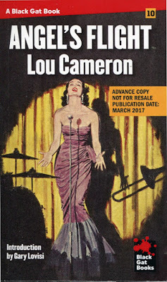 ANGEL’S FLIGHT Fawcett’s Gold Medal paperback original imprint published some of the toughest, leanest, brilliantly plotted, noir and hardboiled novels to ever grace the drugstore spinner racks from the ’50 to the ‘70s. Ornamented with fantastic cover art, Gold Medal paperbacks stand as a legacy from the top authors of a generation. Unfortunately, too many of these novels have been forgotten or lost to time, banished to the tables at paperback collector shows. While they are scarce, a few can still be found in the wild. They haunt the shelves of Goodwill, Salvation Army, and other thrift stores, waiting desperately for somebody who will recognize the power and value of the stories still within their covers. Stark House Press is to be commended for their current Black Gat Books imprint dedicated to bringing back into print some of the best authors from the Gold Medal heydays. Authors such as Harry Whittington, Orrie Hitt, Leigh Bracket, and Vin Packer are names from the past brought back into the public conscious by Black Gat to get their well-deserved due. The latest title from Black Gat is Lou Cameron’s Angel’s Flight. Cameron wrote more than 100 books in his career. Angle’s Flight was his first and it remains a killer of a tale. It’s a crazy ruthless story of the music business told from the inside, from swing jazz to bebop to rock & roll. Angel’s flight is noir at its darkest—desperation on steroids—and a stunning read for anyone who has ever experienced a fascination with the dark side of life. Paperback Parade’sGary Lovisi writes the introduction to this volume stating, Angel’s Flight sings loud and true with terrific characters, real heart and is a joy to read…a noir masterpiece. He’s absolutely right…read it now…