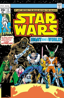 STILL MAGNIFICENT The Magnificent Sevenhas topped my list of my favorite movies list since I saw it for the first time as a very impressionable ten-year-old. The film embodies every male trait I grew up wanting to emulate. Elmer Bernstein's score for The Magnificent Seven became the soundtrack to my childhood.  The iconic music became instantly recognizable in the wider publics conscious in 1963, when it was used in the exceedingly masculineMarlboro Man tobacco advertising campaign. The real cowboy ads, featuring the dramatic theme, singlehandedly catapulted Marlboro cigarettes to the top of the tobacco industry.  While the plot of The Magnificent Seven is based on Akira Kurosawa’s Japanese masterpiece, Seven Samurai, The Magnificent Seven itself has been copied again and again – sometimes almost scene by scene. Not only were there three Magnificent Seven sequels (Return of the Seven, 1966, Guns of the Magnificent Seven, 1969, and The Magnificent Seven Ride,1972), but also a Magnificent Seven TV series, which ran from 1998 to 2000 – each episode a basic remake of the original movie, along with original Magnificent Seven actor Robert Vaughn making numerous guest appearances. There have also been any number of films, television shows, and books in other genres which have adapted the durable western plot to their own tropes and devices.   The sci-fi film Battle Beyond the Stars (1980) featured seven space mercenaries (including Robert Vaughn again virtually reprising his role from The Magnificent Seven) hired to save a farming planet from alien marauders. The Seven Magnificent Gladiators (1983), starring Lou Ferrigno and Sybil Danning (Battle Beyond The Starsalso starred Danning), was a cheesy sword-and-sandal variation on the theme. The pilot for the 1980 television series The A-Team (which again featured Robert Vaughn in later seasons) was also a riff on The Magnificent Seven. Notable authors Stephen King – in his 2003 novel Wolves of the Calla –  and Robert B. Parker – in his 2001 Spenser novel Potshot – also put the always adaptable Magnificent Seven plot to good use. But here is an adaptation of Magnificent Seven I didn't know about until recently. In the late ‘70s, Marvel Comics scribe Roy Thomas wrote a 4-issue story arc Star Wars story (issue numbers 7, 8, 9 & 10 from the original Marvel series) based on the Seven Samurai/The Magnificent Seven plot and illustrated by Howard Chaykin.   In the comic sequence, The Star-Hoppers of Aduba-3 are a group of misfits organized in true Magnificent Seven style by Han Solo and Chewbacca to protect a simple farming village from a band of marauders called the Cloud Riders.  Although the Star Hoppers (also known as the Amazing Eight) only remained together for one mission, three of the surviving members – Jaxxon, Amaiza Foxtrain and Jimm Doshun – later reunited against the threat of bounty hunter Beilert Valance who mistakenly believed Jimm to be Luke Skywalker.  "Couple of years ago, it was, back on Aduba III. I got hired by some ugly mug named Han Solo. Joined up with seven other mercs, each one more hard-scrabble than the next. We went up against the Cloud Riders, a bunch of sorry swoop jockeys from the Outer Rim. Chased em off good and proper, with the help of a big behemothy type thing." ~ Jaxxon, member of the Star-Hoppers of Aduba-3. In sequence, the comic issues include: STAR WARS 7: NEW PLANETS, NEW PERILS! After bidding farewell to their Rebel friends, Han Solo and Chewbacca set out to return to Tatooine to pay off their debt to Jabba the Hutt. En route, they are hijacked by space pirate Crimson Jack and his gang of thugs. The pirates take the reward money given to Han and Chewbacca by the Rebel Alliance for rescuing Princess Leia Organa, but spare their lives.   If you remember the Boot Hill scene from The Magnificent Seven (Steve McQueen upstaging a pissed off Yule Brenner by repeatedly shaking shotgun shells while Brenner is saying his lines) you’ll know exactly what the next plot development will be…  Forced to lay low because they can't pay Jabba, the two seek refuge on the planet Aduba-3. There they are hired by a priest of the Sacred Way to bury a recently deceased borg. Although they meet some resistance from the locals who object to having a borg buried in their traditional mound, they do eventually find their way to the burial site.    McQueen as Vin: “You elected?”   Brenner as Chris: “Nah. I got nominated real good.”  After completing the task, the two smugglers are relaxing in a local cantina where they are presented with a much deadlier one.   Is all of this starting to sound familiar?    STAR WARS 8: EIGHT FOR ADUBA-3 Han Solo and Chewbacca are hired by Ramiz, a moisture farmer on Aduba-3, to protect his village from a band of local thugs known as the Cloud Riders led by Serji-X Arrogantus.  You are allowed to immediately think of Eli Wallach preparing to chew scenery from under a wide sombrero and through a scraggly gunfighter’s mustache…  Han and Chewbacca hire six misfit spacers to help them with the task, including Don-Wan Kihotay, an old man who thinks he is a Jedi Knight, and Jaxxon, a rabbit-like creature with a mean disposition.    Sounds like James Coburn (as Britt) and Charles Bronson (as Bernardo)…  Serji-X tries to convince Han to forget about his mission to protect the peasants and even offers him compensation, but Han declines.   Coburn as Britt faced with the same choice: “Nobody throws me my own guns and says run.”  Meanwhile, on Yavin 4, Luke Skywalker, C-3PO and R2-D2 leave in a scout ship to search for a location for the new Rebel Alliance base (yawn). STAR WARS 9: SHOWDOWN ON A WASTELAND WORLD! Han Solo, Chewbacca, and the Star-Hoppers arrive at Ramiz' village Onacra, only to find it under attack by flying High-Hounds. They repel the beasts, saving the life of a young girl named Merri to the great relief of her father Oncho, the