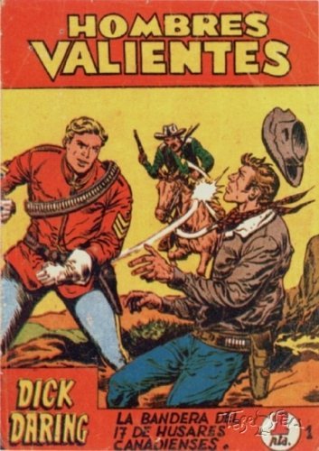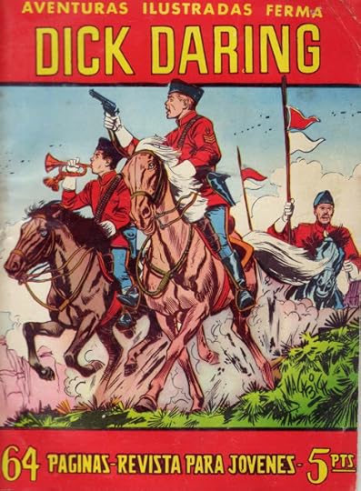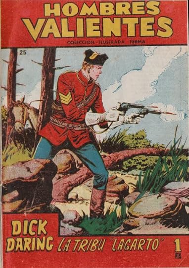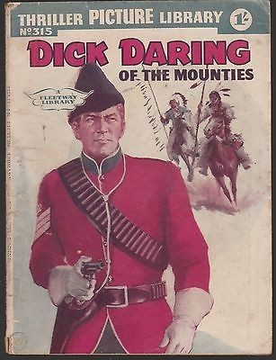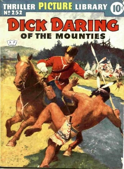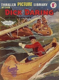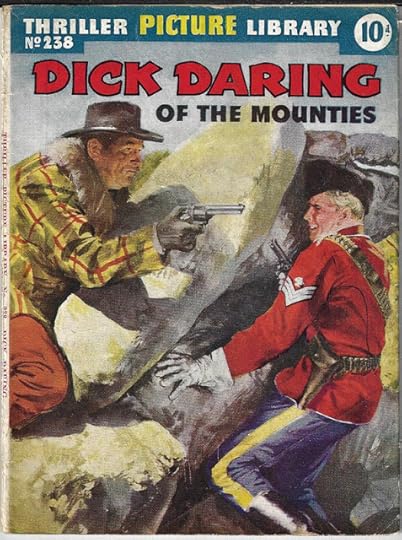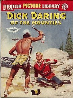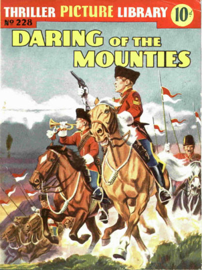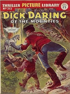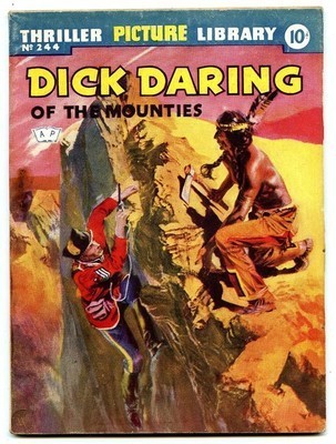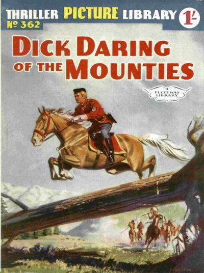 The Royal Canadian Mounted Police had their own Thriller Picture Library hero—Dick Daring of the Mounties. Specifically created for Thriller Picture Library by Reg Bunn, the Scarlet-coated Daring entered the regular rotation of the digest comic's heroes in 1951, starting in Thriller Picture Library's Issue #217. Daring's adventures would continue to run intermittently for over thirty issues through 1961. Michael Moorcock, who would go on to fame as a fantasy and science fiction author, wrote a number of the Dick Daring comic scripts.