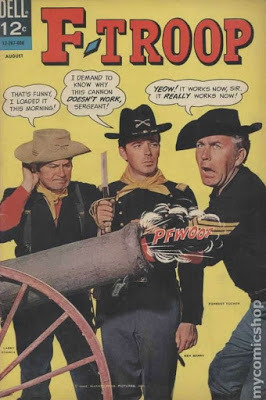 Between 1966 and 1977, Dell published seven F-Troop comics. These were written by D. J. Arneson with art by Tony Tallarico