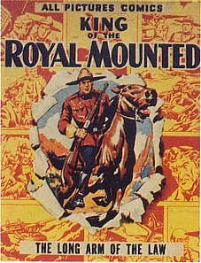 ZANE GREY'S KING OF THE ROYAL MOUNTEDThe comic series King of the Royal Mounted was first launched by the King Features Sydicate as a Sunday strip on February 17, 1935. A Daily strip followed begining on March 2, 1936.