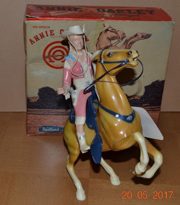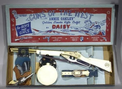 Annie Oakley collectibles were extensive. Everything from Dell comic books to BB rifles to holster sets, puzzles, and much more were all available. In 1955, at the height of the show’s popularity, officially licensed Annie Oakley merchandise topped $10,000,000 in sales.