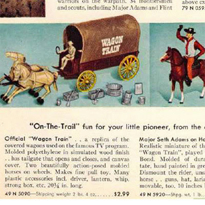 WAGON TRAINWhile not necessarily forgotten, if you mentioned the TV show Wagon Train to a Millennial or Gen-Xer, you would most certainly receive a blank look in reply. Yet for eight years first on NBC (1957-1962) and later on ABC (1963-1965), the Wagon Train led its Conestoga wagons on the post-Civil War trail from Missouri to California.
