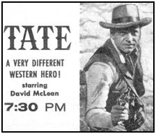 WESTERNS: TATEAiring on NBC from June 8 until September 14, 1960, Tate was conceived by Harry Julian Fink (who later created Dirty Harry and T.H.E. Cat) as the quintessential Western loner.