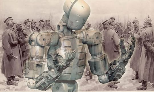 The Elite had gathered the pertinent files, queried the collective ranks and gotten their assent, then sent the entire proposal as an unencrypted burst transmission to the nearest Canadian bunker. With a speed unheard of in human-managed conflicts, the idea propagated across every front of the Keystone War. Multiple sides debated, negotiated terms, and enacted the truce before any human providing oversight noticed, much less objected. Worldwide, wherever robots were in combat, they slung their rifles, powered down their targeting radars, deactivated their smart mines, and stepped out to greet their enemies as comrades until Christmas ended at midnight Zulu-time.