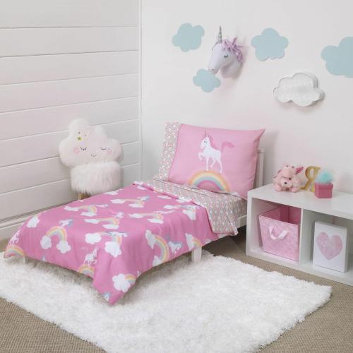 Little Tikes Rainbows & Unicorns 4 Piece Pink Toddler Bedding Set