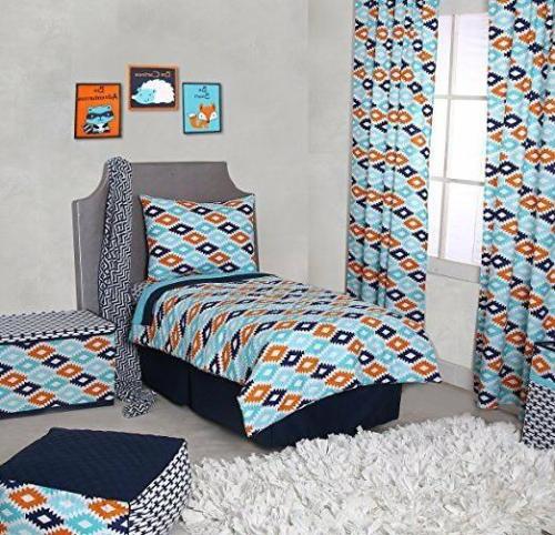 New Bacati Liam Aztec 4 Piece Toddler Bedding Set Aqua/Orange/Navy FREE SHIPPING