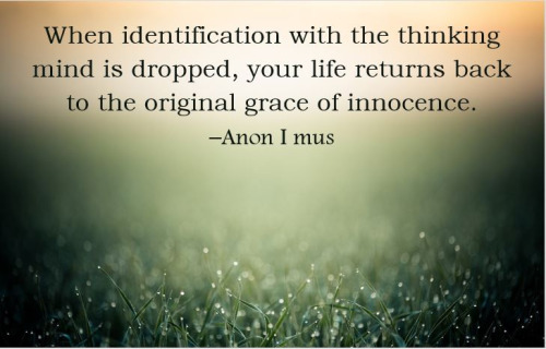 When identification withthe thinking mind is dropped, your life returns back to the original grace ofinnocence. –Anon I mus