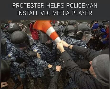 Police helping protester - via...