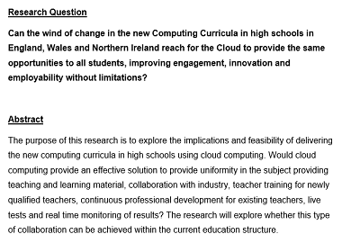 The UK Government introduced new computing curricula into High schools but it is delivered, on the whole, using conventional methods of teaching and, in some cases, by teachers who are not qualified or trained in the subject. I got to thinking – dangerous I know! What if the subject was delivered using Cloud Computing – interlinking experts from all fields within the subject? What impact would it have on the teachers and pupils? What impact would it have on improving engagement, innovation and employability? How would the delivery impact on children from low income families and would it attract more, including more girls, to take the subject and improve the staff shortages in the industry.