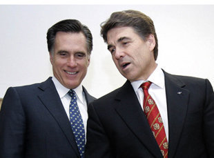 Most political reporters came away from last night's Republican debate impressed with Mitt Romney. I came away wondering what possible advantage Romney could have over Rick Perry from the perspective of a Republican voter. It is true that Romney towered over the rest of the field, both literally in in his general alpha-male ability to project a sense of command. But his weaknesses are vast and unexploited. Last night Romney did not even bother to deny that his health care plan was a replica of President Obama's, instead resting his entire defense on the fact that he only imposed it at the state level. Federalism is not a distinction anybody actually cares about, as demonstrated when Romney himself cast it aside in a subsequent exchange over gay marriage.