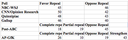 I've noticed that conservatives still reside in a world in which the public overwhelmingly wants to repeal the Affordable Care Act. The Weekly Standard writes, "Reflecting the clear and strongly held views of the vast majority of Americans, the House has voted overwhelmingly to repeal ObamaCare."