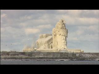 Gale force winds created monster waves which crashed on the Cleveland Harbor breakwall and West Pier lighthouse. As the resulting water spray continued to coat the structures the ice quickly accumulated.