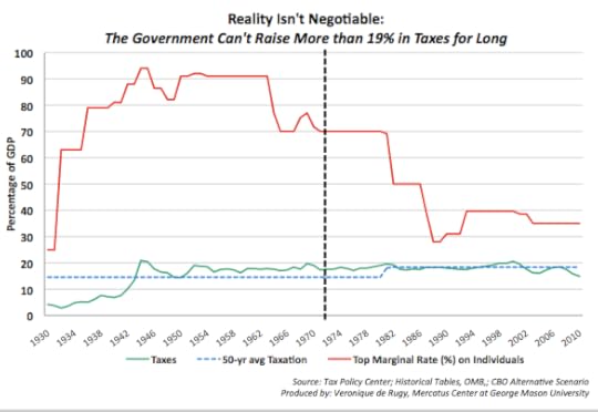 Ubiquitous libertarian anti-tax pundit Veronique de Rugy pulls out the old hackneyed Republican line that tax revenues can't go above 19 percent. She even has a chart!
