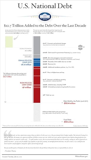 Nor is it exactly obvious to look at the $2.4 trillion in additional debt incurred during Bush's eight-year presidency, and say that he is nonetheless actually responsible for $7 trillion of our current debt load--and then turn to the $3.1 trillion of debt incurred during Barack Obama's three-year presidency, and declare that his policies are actually responsible for only $1.4 trillion.