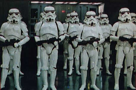 The prop designer who created the stormtrooper uniforms for "Star Wars" has been selling replicas, and George Lucas has tried to stop him: