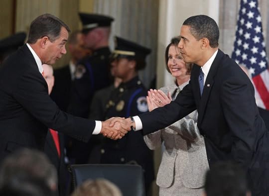 It's interesting that John Boehner is apparently open to a grand bargain. Maybe, lurking beneath that tanned face and hackish career is the soul of a patriot, or a deficit hawk, or prospective future member of blue ribbon panels. Possibly Boehner's hours of discussions have persuaded him that he must abandon party orthodoxy to address the deficit.