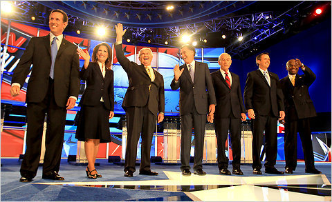 A recurrent Chait blog theme that looked bad tonight: Tim Pawlenty as front-runner. Boy, did he look weak, especially when he refused to defend his "Obamneycare" line. There's going to be a wimp narrative, and Republicans like their men manly.