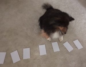 2) Shuffle the cards face-down, then place on the floor before waking up my dog and inviting him to join the fun.