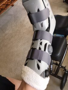 The sad truth is that I was putting on my shoes and lost my balance, in my own carpeted hallway. The audible C-R-A-C-K! clued me in that this time it was not “just” a bad sprain. An X-ray, one that even I could read, showed why it would take eight weeks instead of six to heal. And it was my right leg, which meant no driving, even after I was off crutches.