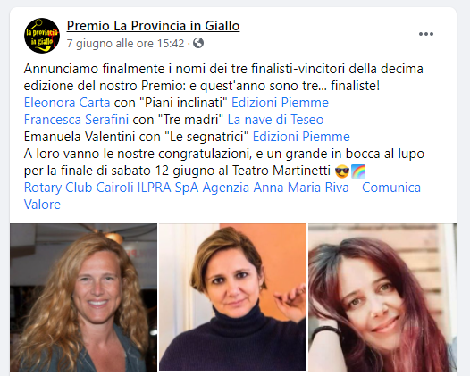 [image error]L'articolo Premio La Provincia in Giallo – Piani Inclinati Finalista! proviene da Eleonora Carta.