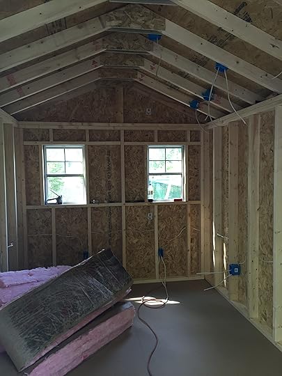 Last summer, my husband gifted me with a great idea. As my children grew they each wanted their own room and eventually I lost my office in the house. No resentment there, but I found working in the living room to be too difficult. That was when my husband suggested a writing shed. We bought a basic shed, and after many hours of labor in constructing a platform for it, it was delivered.
