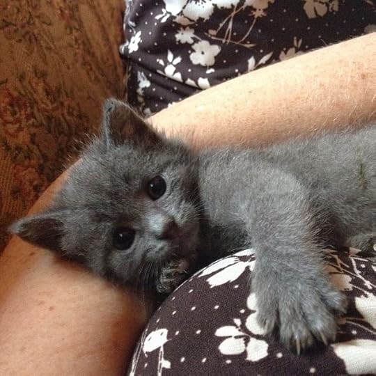 My kitten, Dorian Gray. It's "Dori" for short.They're not at all slavish. I have two corgis; they think I'm wonderful no matter what I do. The cat makes me work for her affection. This is good practice for writers; with cats you learn the value of working to please one's audience.Some of my favorite writers have cats. Ernest Hemingway was famous for his polydactyl cats, so much so that even now six-toed cats are called "Hemingway Cats. There's a fantastic book on Hemingway's cats here if you're interested.