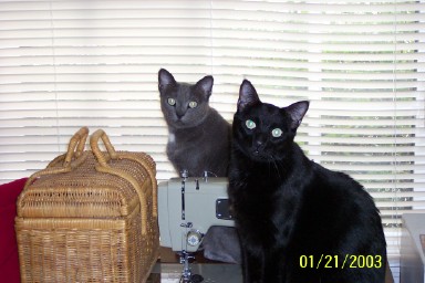 Here are James and Agamemnon giving me a cute look beside my sewing basket.