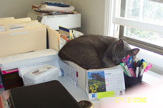 And James curled up in a box on my desk.