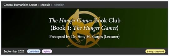 My “The Hunger Games” module with SPACE (Signum Portals for Adult Continuing Education) online via Signum University is currently a candidate for September 2025. This is a proposed first module of five, one for each of the five Hunger Games novels by Suzanne Collins. Each week will include one recorded lecture and one live discussion section. Voting runs through August 1. I hope you will join us as we explore the lessons we may learn from Panem.