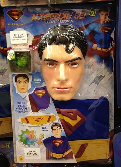 So if this kid is really into his role as Brandon Routh playing Superman, he'll pretend to be Brandon Routh pretending to writhe in pain as the lite-up Kryptonite poisons his insides. It should come with blood capsules so he can properly simulate the face-bleeding.Which is also consistent with the "I stole an actor's face" backstory to this costume.Kids, this Halloween, please strongly consider the Dying Superman Accessory Set™.
