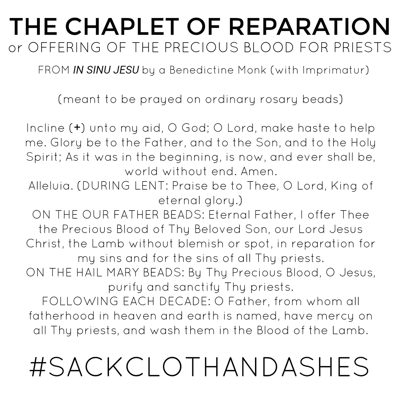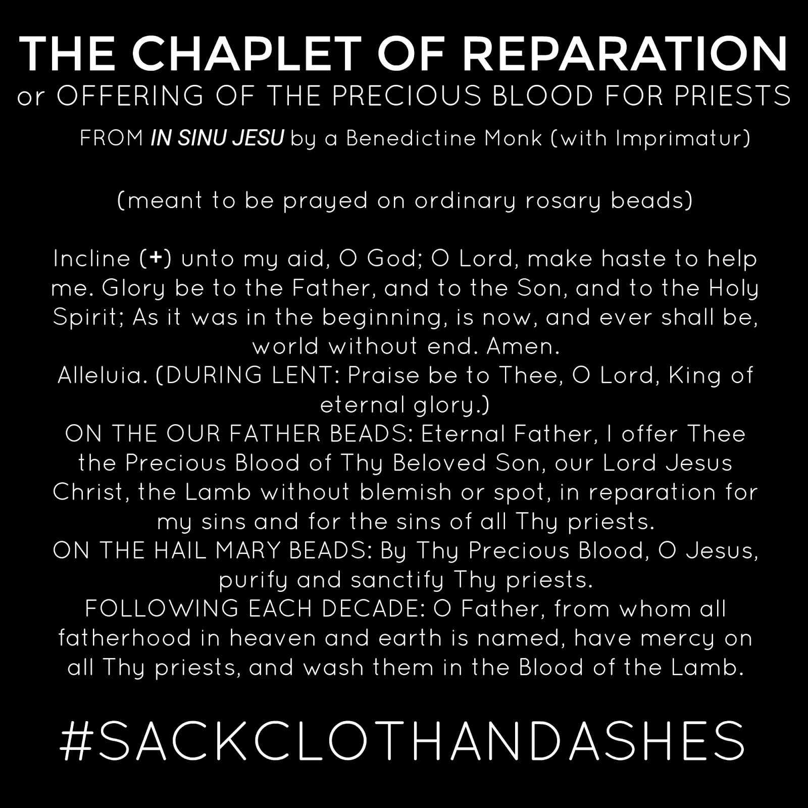 Or another Chaplet of Reparation, known as Offering the Precious Blood for Priests, found in