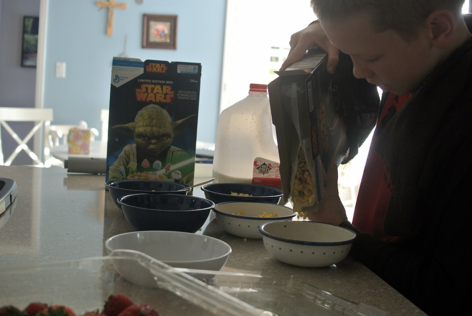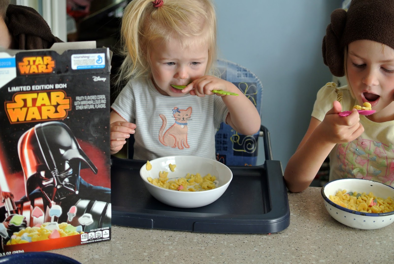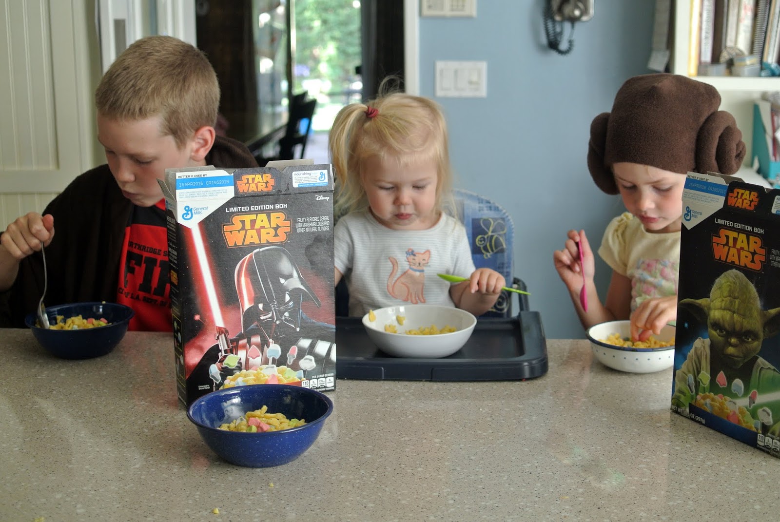 And then sometimes, someone asks me if I would be interested in getting two free boxes of Star Wars Cereal and taking pictures of my kids eating it and giving YOU GUYS a coupon for a dollar off so you can get some for yourselves, and I'm like, "Mission, schmission. Send it over."