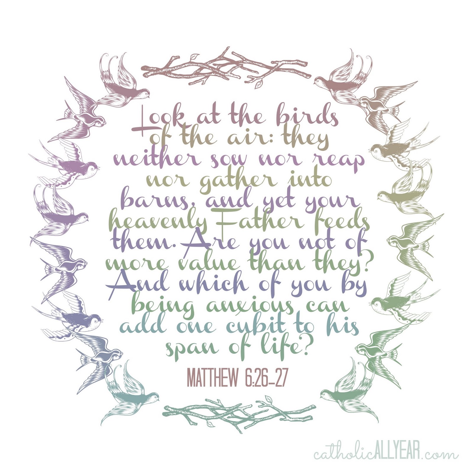Do not be anxious about your life, what you shall eat or what you shall drink, nor about your body, what you shall put on.