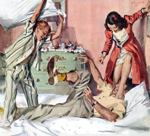 But every bit of research says it's a VERY good thing for kids to roughhouse with their dads. Which means every bit of research says it's a very good thing for mom to quit trying to make them stop.