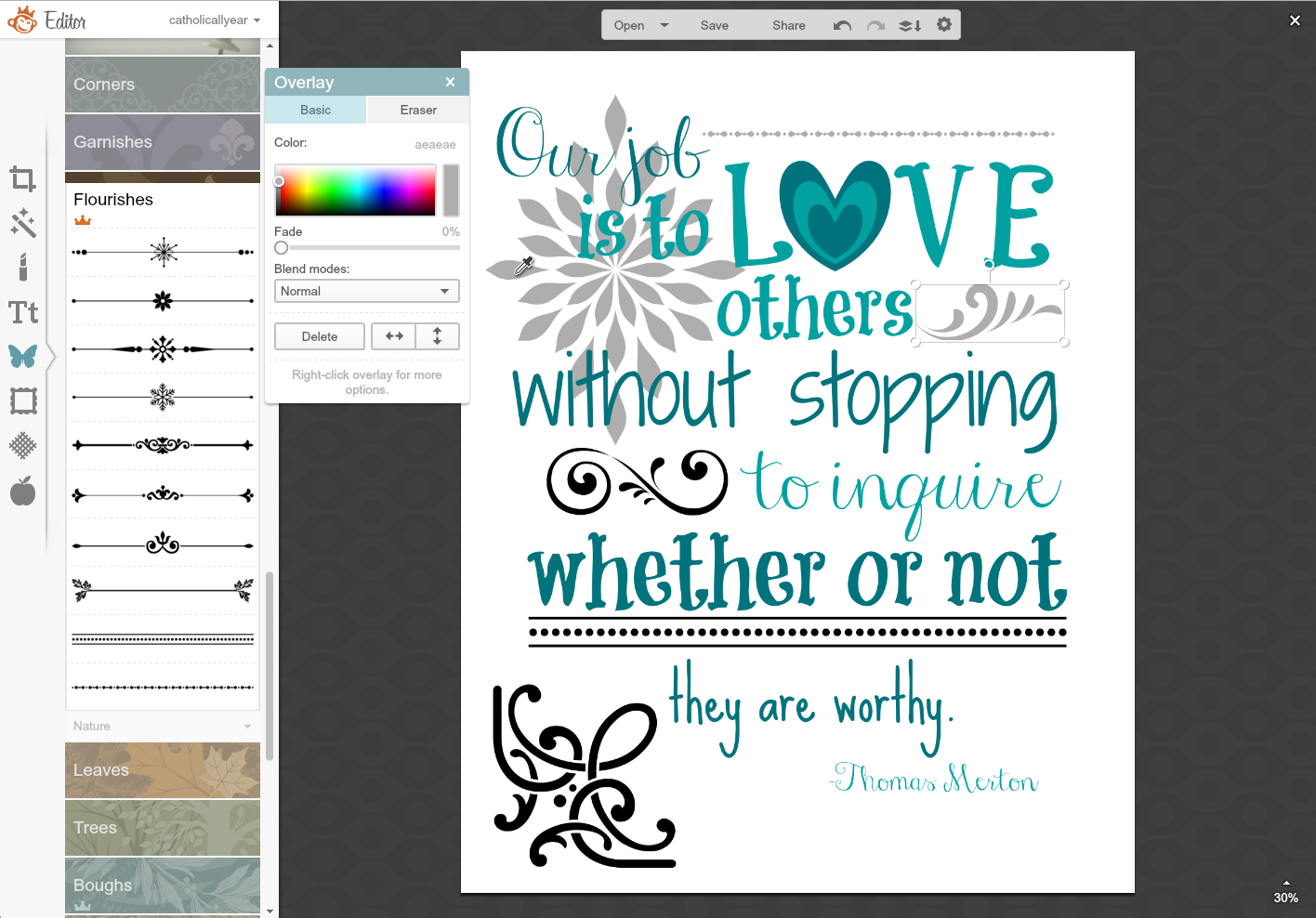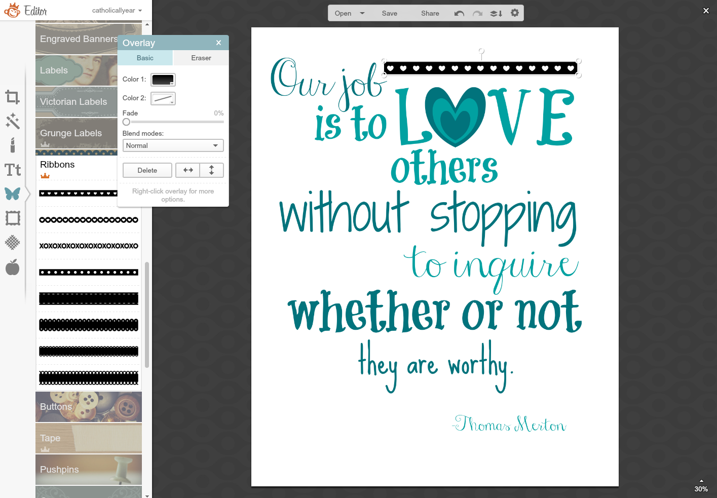 7. When a quote or prayer doesn't have enough words to fill the space, I add Overlays.