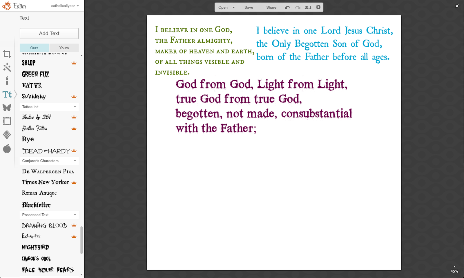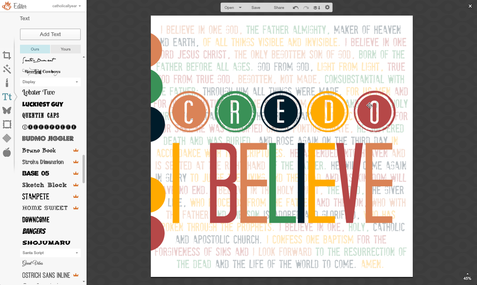 The only direction I got was, that it should say Credo: I Believe.